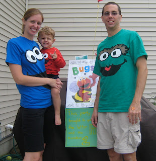 We had so much fun at Henry's party that I forgot to take any before pictures of the games and set up, but hopefully the pictures we did get will help Henry remember his first friend party. I had a sign welcoming the guests that said "Can you tell me how to get, how to get to Henry's party?" and the sign behind us in this picture says "This party is brought to you by the letter H and the number 2." We ordered pizza of course since that is both Elmo and Henry's favorite! We also had basketball with a Sesame Street ball, an Oscar trash toss, and I made mini Sesame Street coloring books. I think I had just as much fun getting ready for the party as Henry had at the party!
